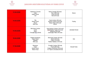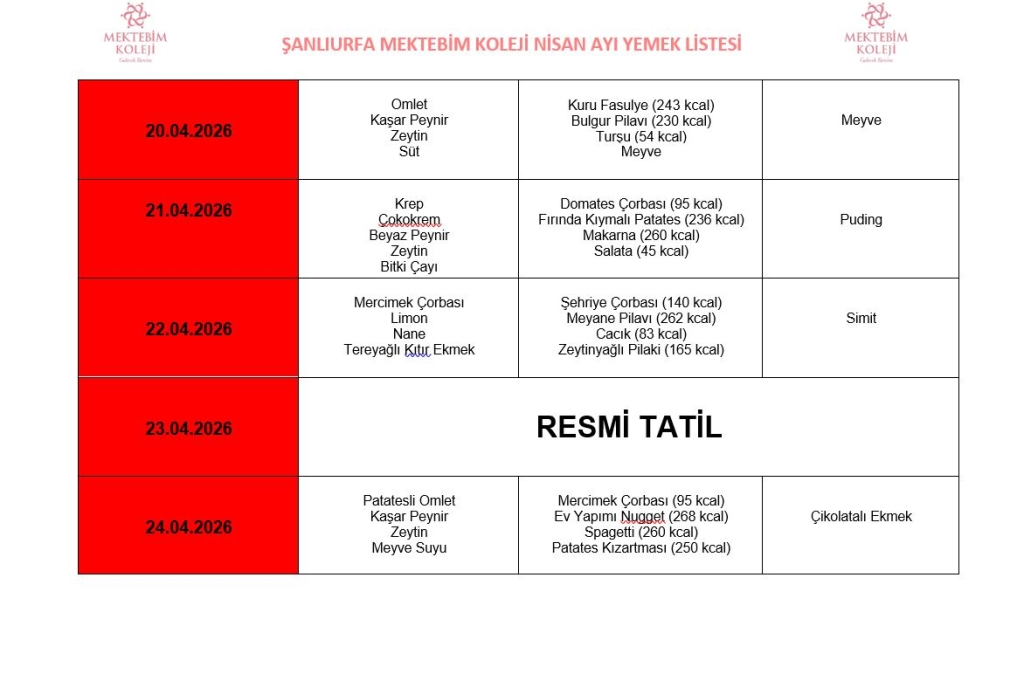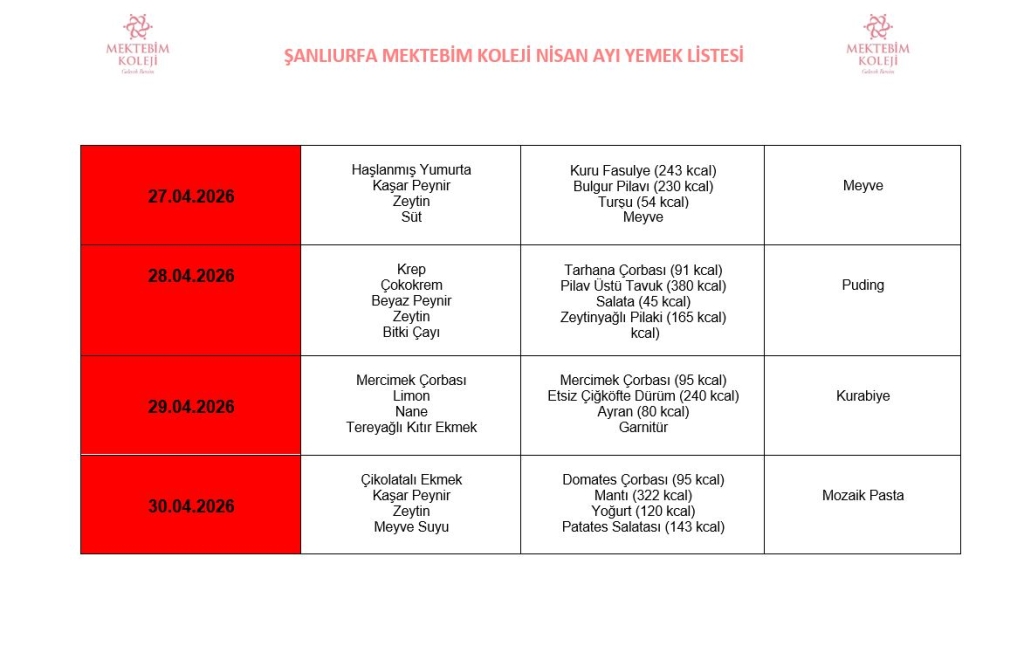 NİSAN AYI YEMEK MENÜSÜ