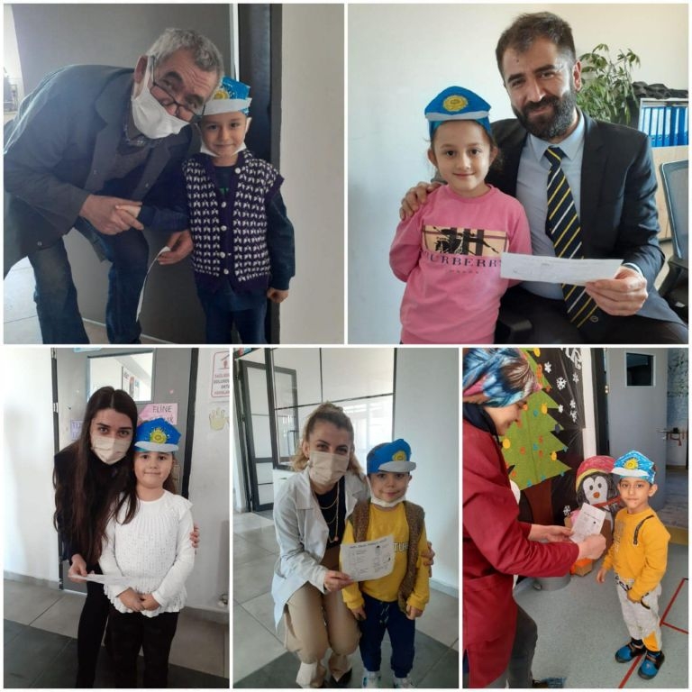 Enerji Tasarrufu Haftası nedeni ile öğrenciler elektrik polisi şapkalarını yaptı, nasıl enerji tasarrufu yaparız? broşürlerini hazırladı ve okuldaki öğretmenlerine broşürlerini dağıtarak bilgi verdi.